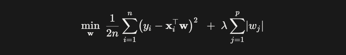L1 - Lasso: 손실 함수에 가중치의 절대값 합을 추가