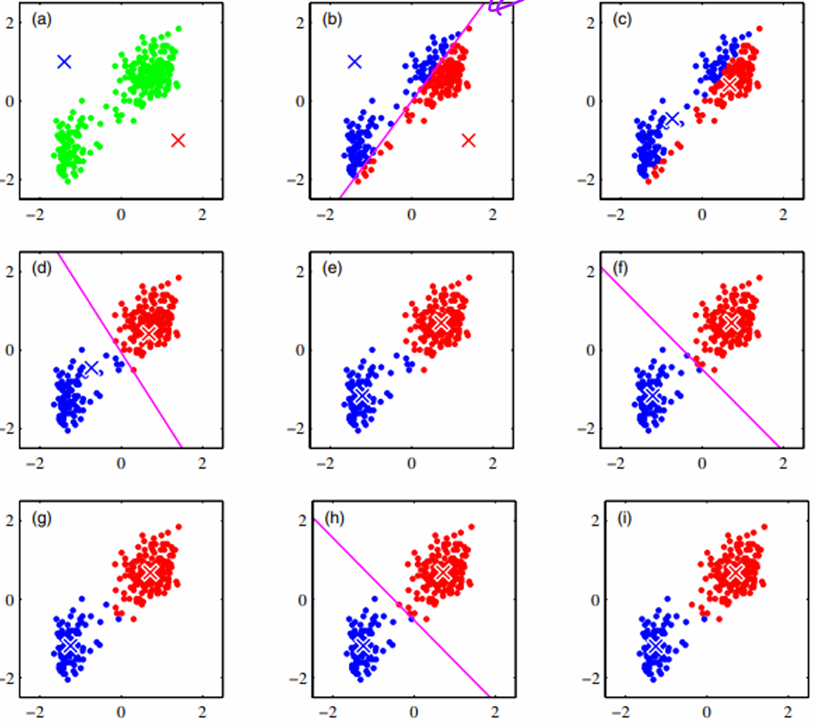 - 특정 클러스터에 속하는 모든 점들의 평균값으로 중심점을 재조정한다.