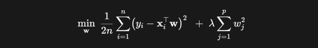 - 회귀계수(가중치)에 패널티를 부과하여 과적합을 방지한다.