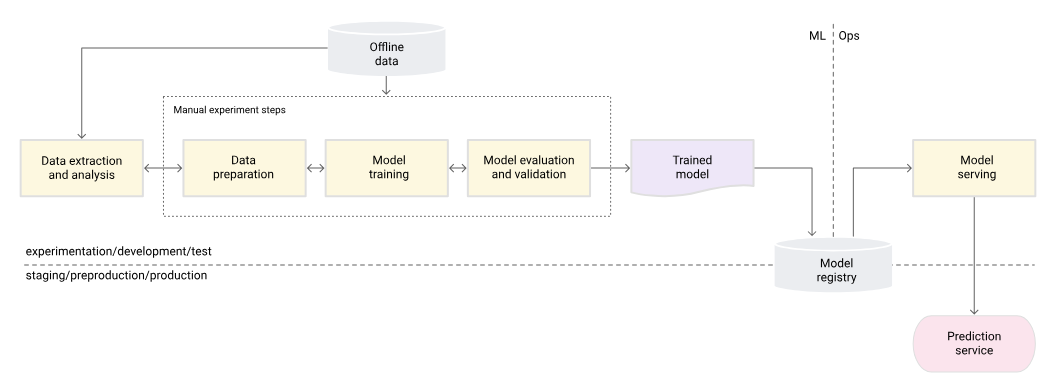 - 이 프로세스는 모델을 만드는 데이터 과학자와 모델을 예측 서비스로 제공하는 엔지니어를 분리한다.