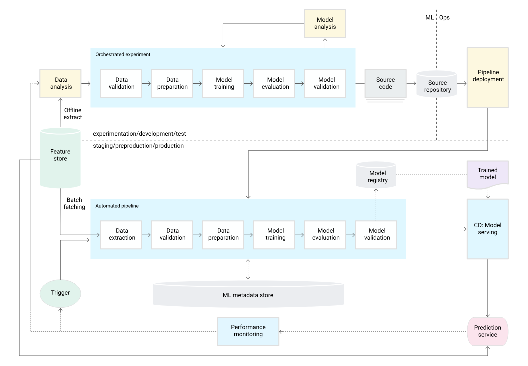 - 새로운 데이터를 사용하여 모델이 프로덕션 단계에서 자동으로 학습한다.