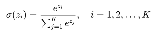 - 차원 벡터에서 특정 출력값이 k 번째 클래스에 속할 확률을 계산한다.