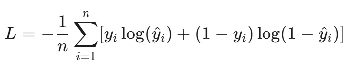 - 이진 크로스 엔트로피 (Binary Cross-Entropy): 이진 분류에 사용된다. 주로 출력층의 활성화 함수로 시그모이드(Sigmoid)와 함께 쓰인다.