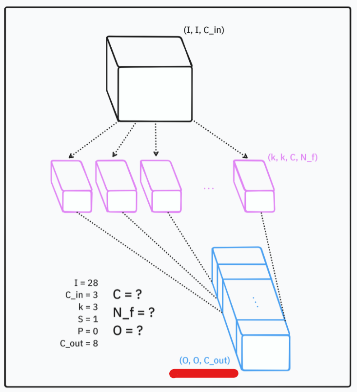 아래 그림은 합성곱 연산의 예시이다. C, N_f, O 세 개를 구해보자.
