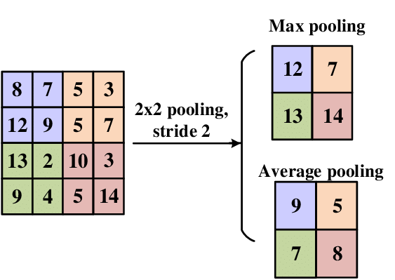 - 적용 효과: 차원 축소, 계산량 감소, 과적합 방지, 위치 불변성. (예: Max Pooling, Average Pooling)