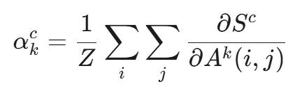 - α_k^c: 클래스 c에 대한 k번재 피처 맵의 최종 중요도 가중치