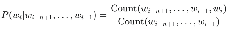 N-gram은 특정 단어의 확률을 예측할 때, 그 단어 바로 앞에 나오는 (N-1)개의 단어만 본다.