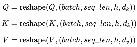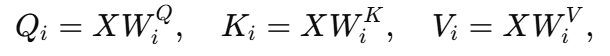 이렇게 헤드를 나눈 다음, 각 헤드 i에 대해 어텐션을 계산한다.