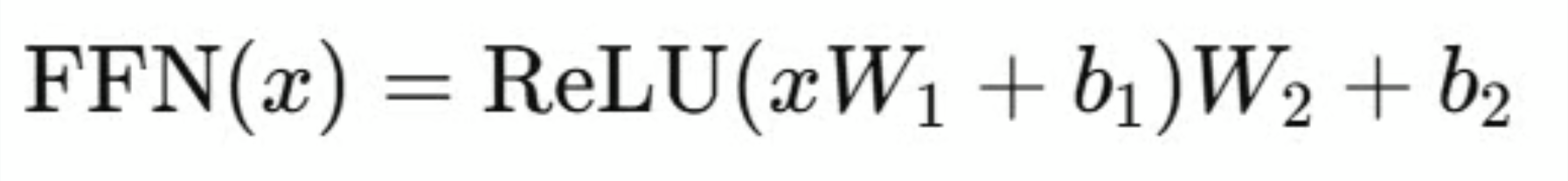 Feed Forward는 k개의 층으로 이루어져 있는 신경망 구조이며, 활성화 함수로는 ReLU를 사용한다.