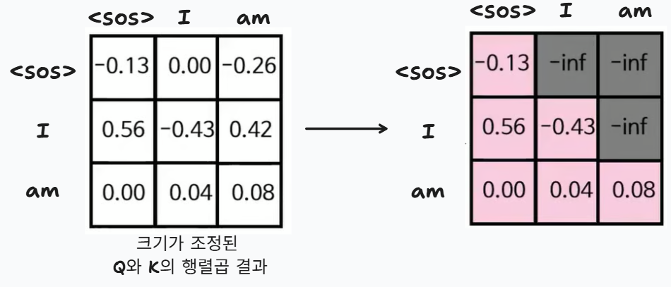 - 이때 마스킹된 부분을 -inf로 바꾼 이유는?