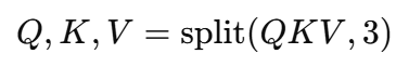 위의 방식대로 Q, K, V 하나씩 만드는 방법도 있지만, 한 번에 투영 후 분할하는 아래의 방법이 더 효율적이다.