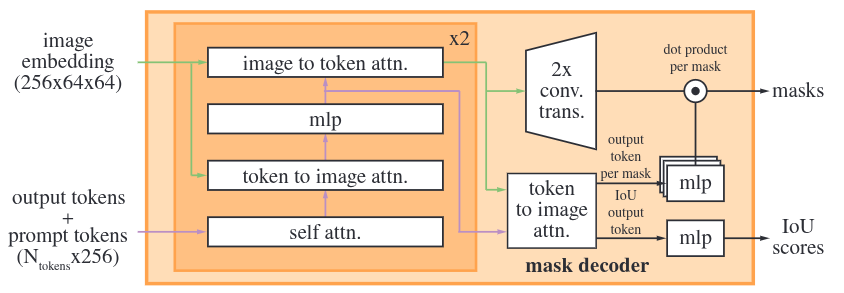 - prompt tokens: point, box 등 Prompt Encoder를 거친 임베딩 세트
